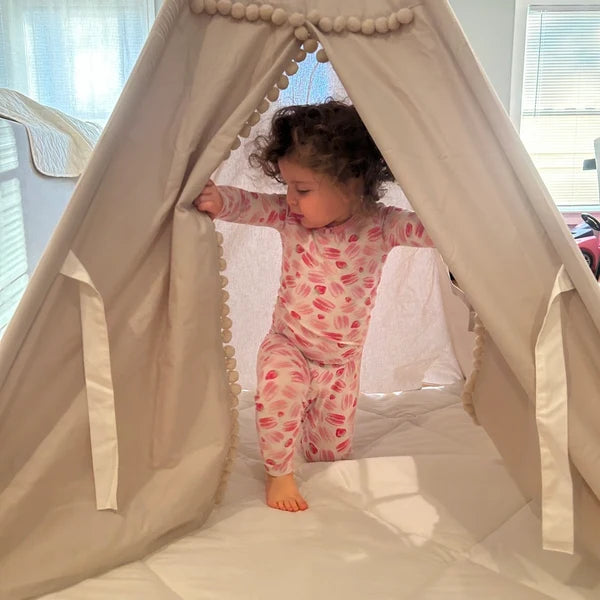 Create a cozy little world for your child with this beautifully crafted indoor teepee tent. Thoughtfully designed with soft, breathable cotton and sturdy wooden poles, it offers a charming hideaway for reading, napping, or imaginative play. The neutral tones complement any room in your home—making it as stylish as it is playful. Easy to set up and lightweight to move, this teepee becomes an instant favorite for both boys and girls, offering a safe and soothing space they’ll love to call their own.