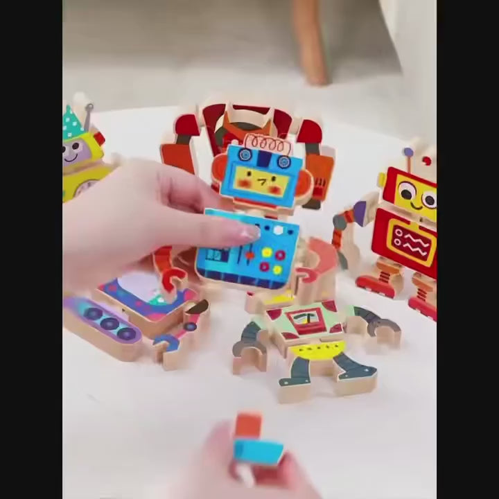 Let little builders bring their robots to life! 🤖🧩 This Creative Wooden Robot Assembly Toy includes 2 styles—each with 3 mix-and-match robots—for a total of 6 customizable creations. Each robot is made from smooth, natural wood and features a clever button design that allows children to assemble and disassemble parts over and over again.