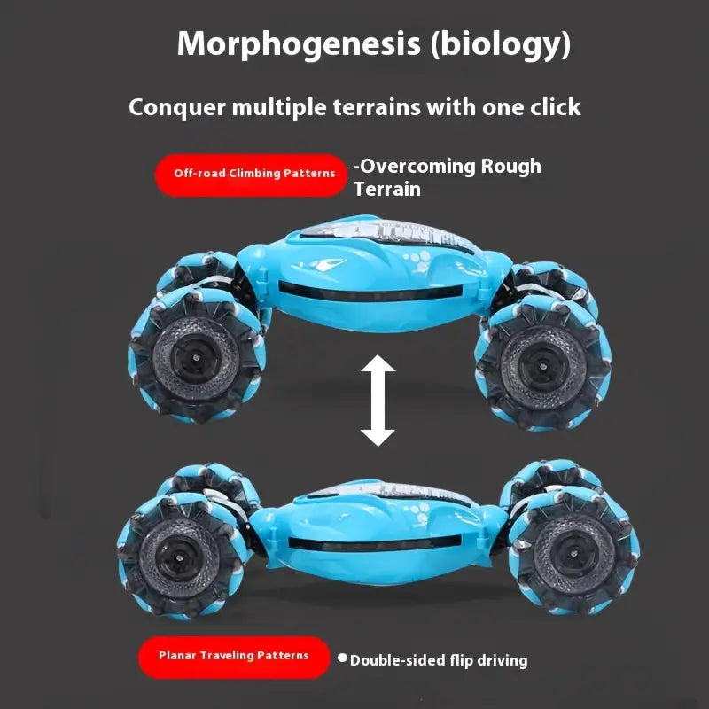 Get ready for flips, spins, and turbo fun! 🔄 This high‑energy 1:12 Remote Control Car features 2.4GHz control, gesture sensor tech, and 4WD off‑road action — plus music and flashing lights to keep the adventure rolling. It performs wild stunts, 360° flips, and drives double‑sided for non‑stop action indoors or out. Use the hand sensor for cool futuristic control, or stick with the easy push‑button remote. Built for thrill‑seekers aged 6+ and perfect for birthdays, Christmas, or any gift that gets them moving!
