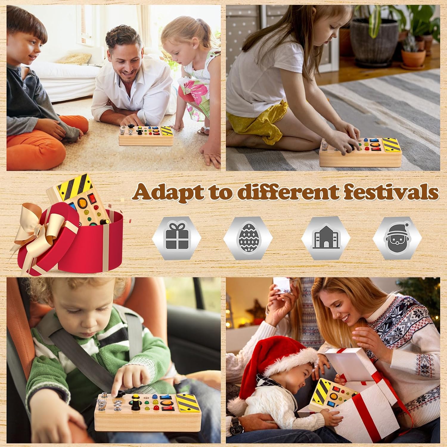 The Montessori LED Busy Board is a captivating sensory toy that lights up your child’s imagination and fine motor skills. Designed with 12 colorful LEDs, buttons, switches, and a child-safe mirror, this portable activity board keeps kids actively engaged while promoting coordination, logic, and hands-on problem-solving.