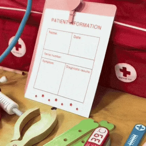👩⚕️ Calling all little caregivers! The Toddlers Wooden Doctor Set opens the door to a world of empathy, curiosity, and role-play fun. With 20 charming wooden tools—including a stethoscope, thermometer, syringe, and more—kids can explore the world of medicine, learn how the body works, and take on the role of doctor or nurse in the most heartwarming ways. 🧸