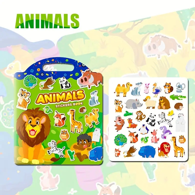 Stickers that stick — and unstick — again and again! ✨ This Waterproof Reusable Sticker Book is packed with engaging themes like dinosaurs, animals, space, vehicles, and ocean life, giving kids endless opportunities to create, imagine, and play. Perfect for car rides, plane trips, or quiet play at home, these thick vinyl stickers are easy for little hands to peel and place. No mess, no waste, just open-ended fun that builds fine motor skills and storytelling power. An ideal screen-free gift for ages 3+, and a parent’s dream for travel! 🎒📖