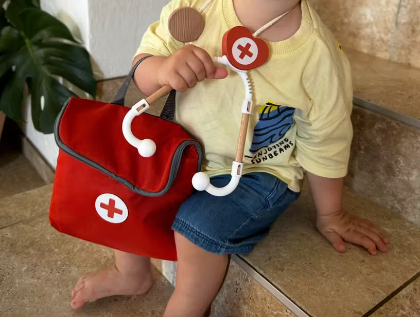 Calling all little healers! 🩺 This 14-piece Wooden Doctor Playset lets kids step into the exciting world of medicine through immersive pretend play. Whether diagnosing plushie patients or performing a make-believe surgery, your child will love exploring empathy, problem-solving, and creativity. Crafted from smooth, child-safe wood, this set includes classic tools like a stethoscope, syringe, thermometer, and more—plus a DIY scene setup for a mini "clinic" at home. Perfect for sparking imaginative adventures and building confidence in aspiring little doctors!